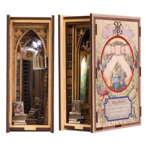 Nos booknooks sont des dioramas miniatures détaillés, conçus pour s’insérer entre vos livres et apporter une touche magique à votre bibliothèque. Chaque modèle est fabriqué avec soin et comporte des éléments lumineux et des décors réalistes.