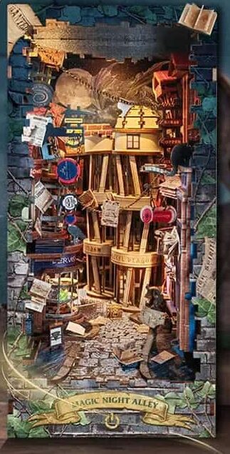 Nos booknooks sont des dioramas miniatures détaillés, conçus pour s’insérer entre vos livres et apporter une touche magique à votre bibliothèque. Chaque modèle est fabriqué avec soin et comporte des éléments lumineux et des décors réalistes.