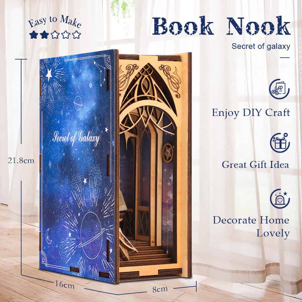 Nos booknooks sont des dioramas miniatures détaillés, conçus pour s’insérer entre vos livres et apporter une touche magique à votre bibliothèque. Chaque modèle est fabriqué avec soin et comporte des éléments lumineux et des décors réalistes.