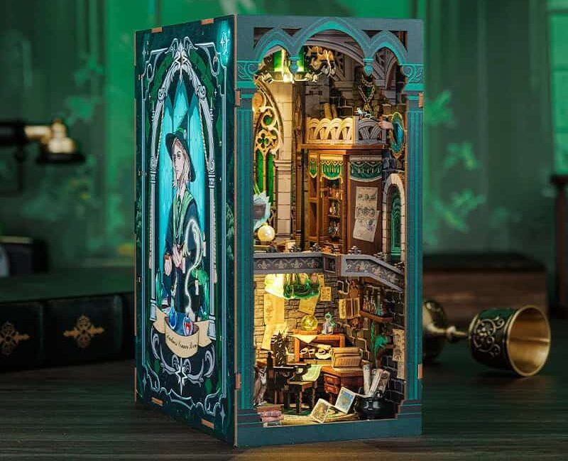 Nos booknooks sont des dioramas miniatures détaillés, conçus pour s’insérer entre vos livres et apporter une touche magique à votre bibliothèque. Chaque modèle est fabriqué avec soin et comporte des éléments lumineux et des décors réalistes.
